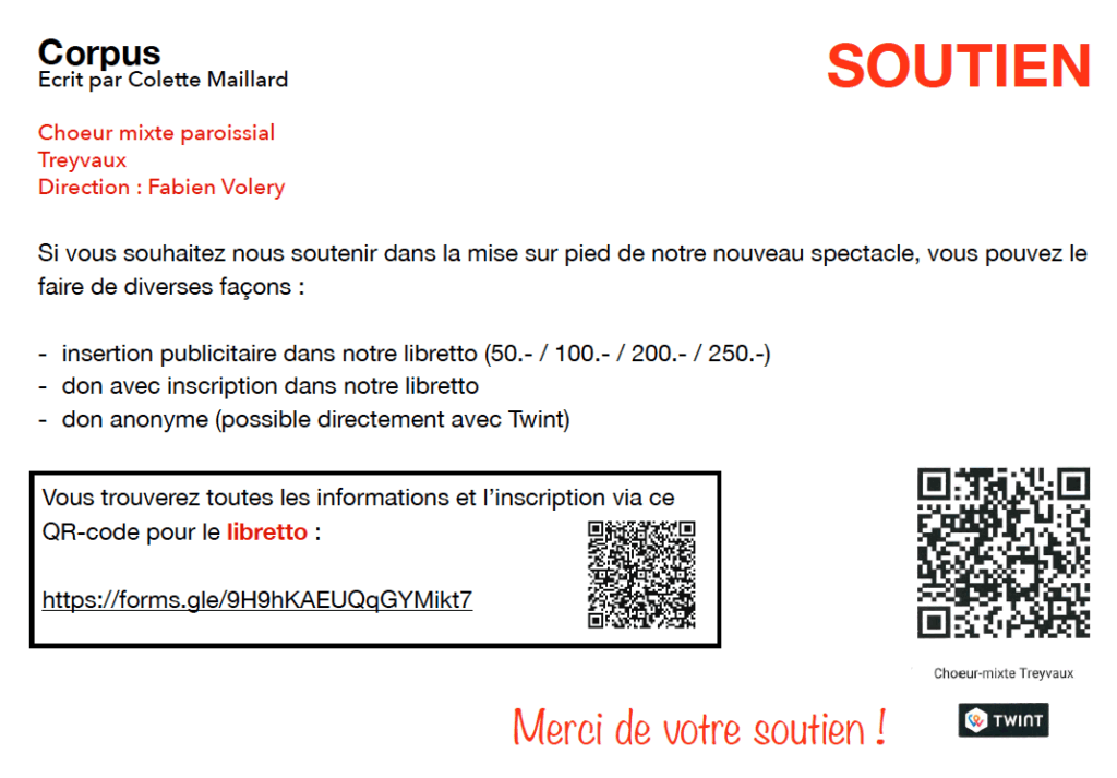 Nous soutenir IMPORTANT !! Paiement par TWINT uniquement pour les dons anonymes QR-Code et lien pour inscription dans le libretto : Lien